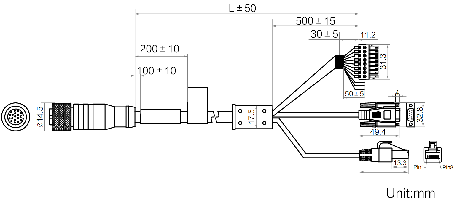 | 名称 | 一体线网口静态,超柔5米,17pin转open/RJ45/DB9 |