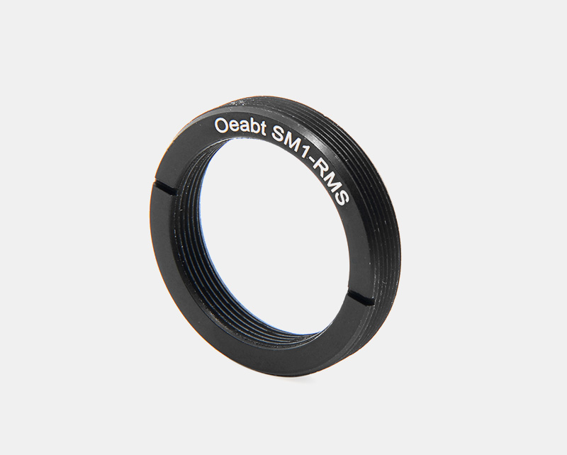 SM1-RMS转接件是SM1(1.035”-40)外螺纹,RMS(0.800”-36)内螺纹。同时Oeabt提供多种RMS螺纹组件与其它标准螺纹集成,实现SM1、RMS、C-Mount、M25*0.75、M27*0.75之间不同螺纹的自由转接。