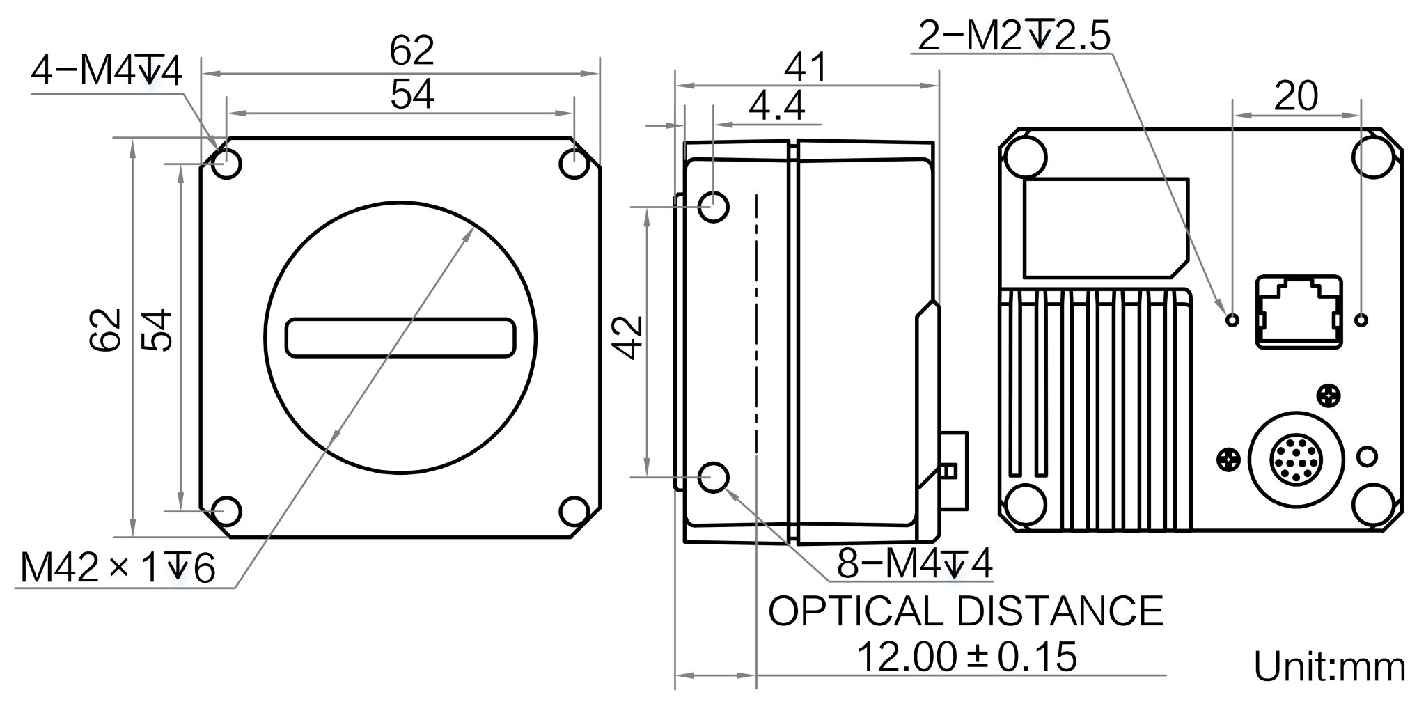 结构 | 镜头接口 | M42*1.0,法兰后焦12 mm;可通过转接环转接至F口、C口及其他螺纹口镜头 |