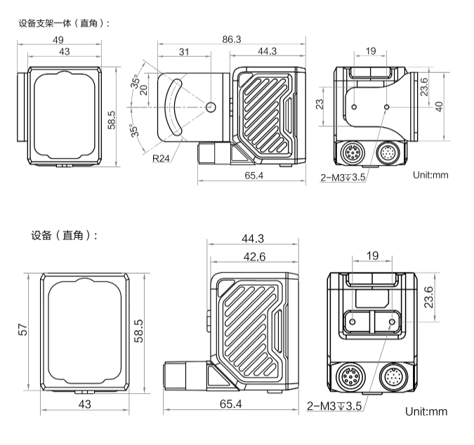 外形尺寸 | 平角:80.1 mm × 43 mm × 44.3 mm 直角:58.5 mm × 43 mm × 65.4 mm |