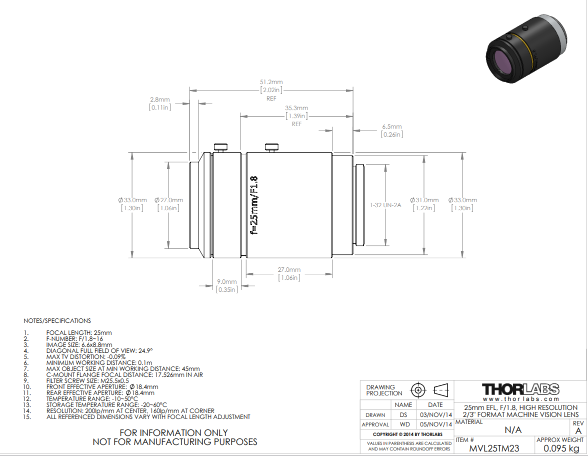 Thorlabs索雷博 MVL25TM23 定焦镜头