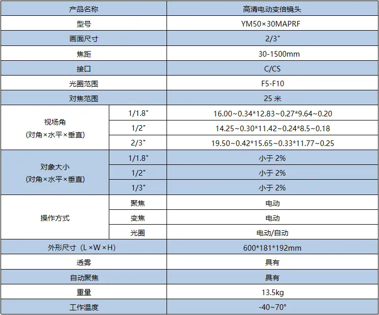 山田YAMAKO YM50×30MAPRF 高清电动变倍镜头