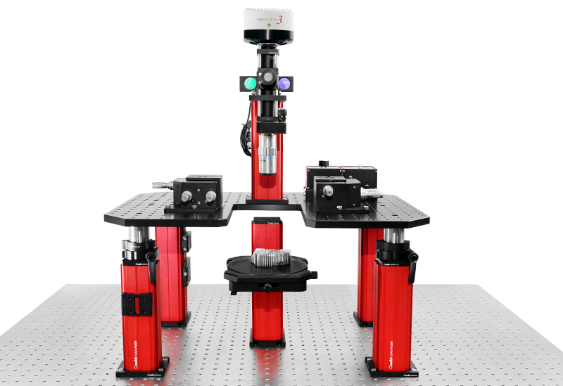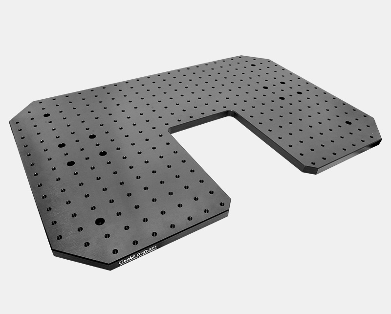 OHD-SP系列异形面包板因其本身凹槽、中心通孔设计,可以沿显微镜的光路周围安装,支持样品支架、微操纵器或多组件实验装置。平台面板M6螺孔贯穿面包板,阵列间距为25mm。
