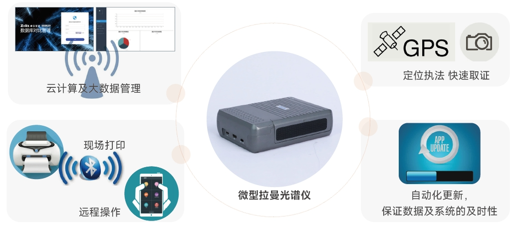 FE785-Lite 是北京卓立汉光分析仪器新推出的微型拉曼光谱仪,具备质量轻便、小巧便捷等特点。仪器蓝牙和USB 双通讯模式可选,整机390g,拉曼核心模组仅150g(除外壳和电池),非常适用于OEM 客户系统集成。FE785-Lite 附带安卓APP,可安装在任意安卓手机使用。软件内置标准拉曼数据库,现场快速比对检测,此外,仪器具备多种数据及报告处理功能,如自建库、查看检测数据、生成报告、导出报告或打印报告等。