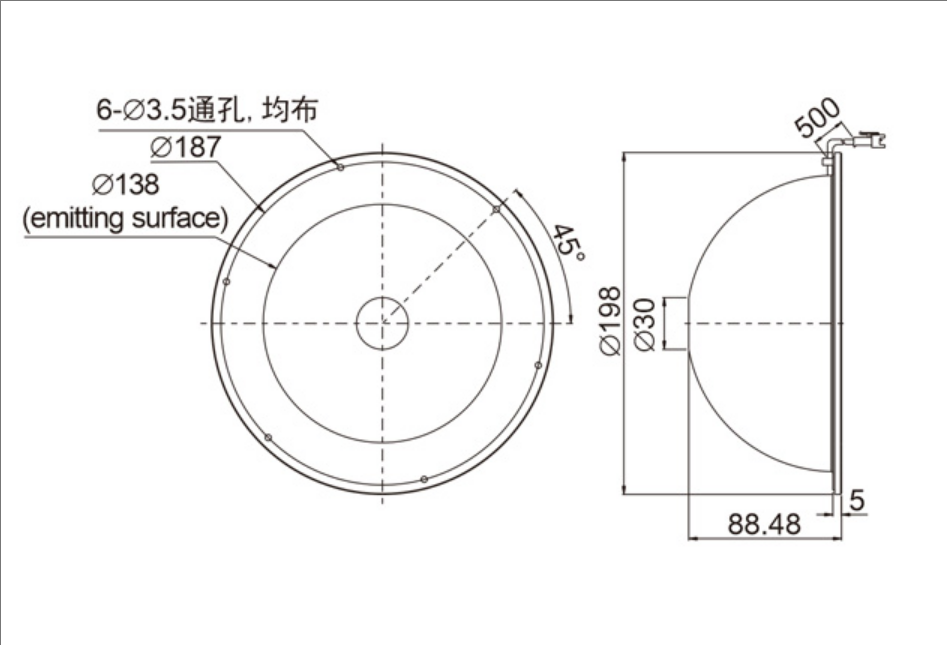 使用寿命 | 在本公司指定使用条件下,红光5万小时,白光3万小时,亮度降低到出厂值的50% |