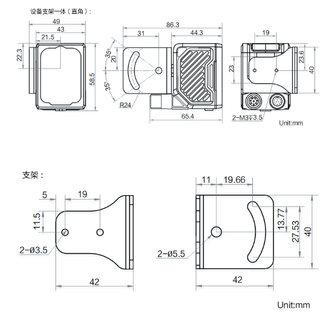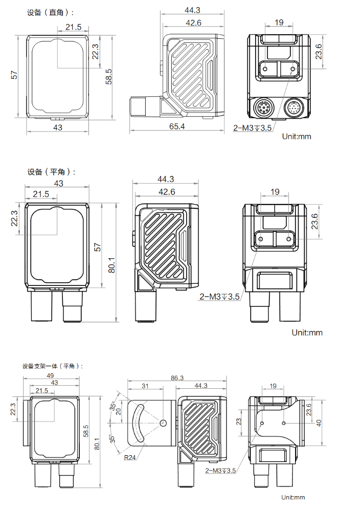 | 外形尺寸 | 平角:80.1 mm × 43 mm × 44.3 mm 直角:58.5 mm × 43 mm × 65.4 mm |