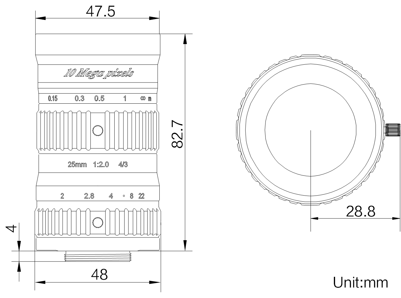 名称 | 25mm,F2.0,4/3",1000万分辨率,C接口镜头 |