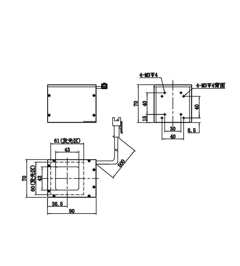 发光区尺寸 | 61 mm × 60 mm |