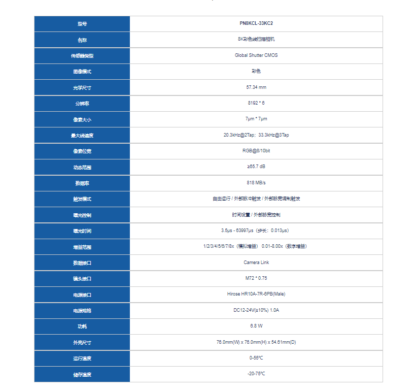 I-Tek埃科 PN8KCL-33KC2 线扫描相机