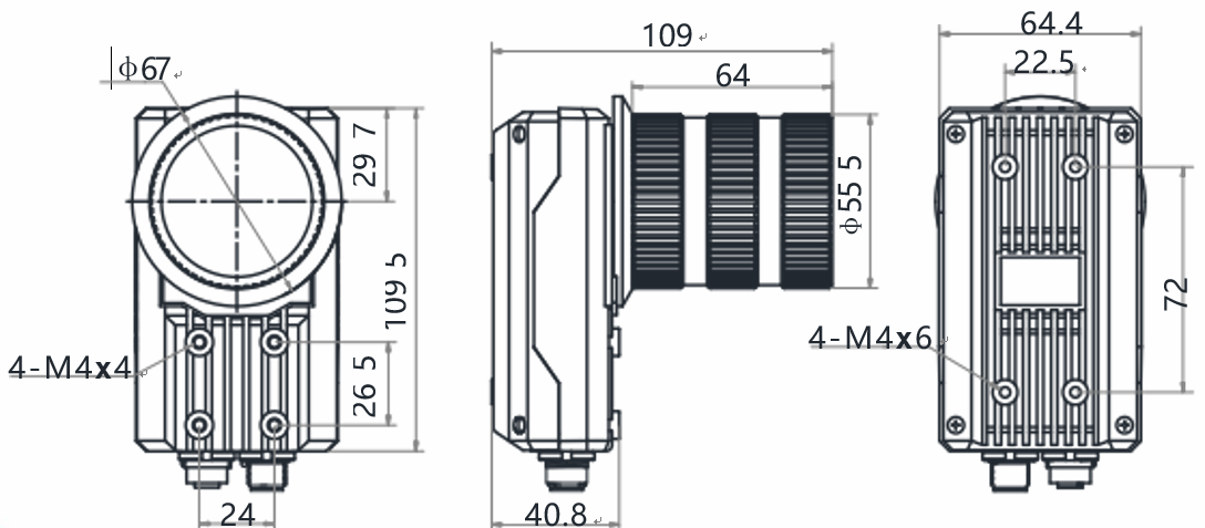 数字I/O | 12-pin M12 接头提供电源和I/O,包含3 路光耦隔离输入(LineIn 0/1/2),3 路光耦隔离输出(LineOut 3/4/5),1 路RS-232 输入,1 路RS-232 输出 |