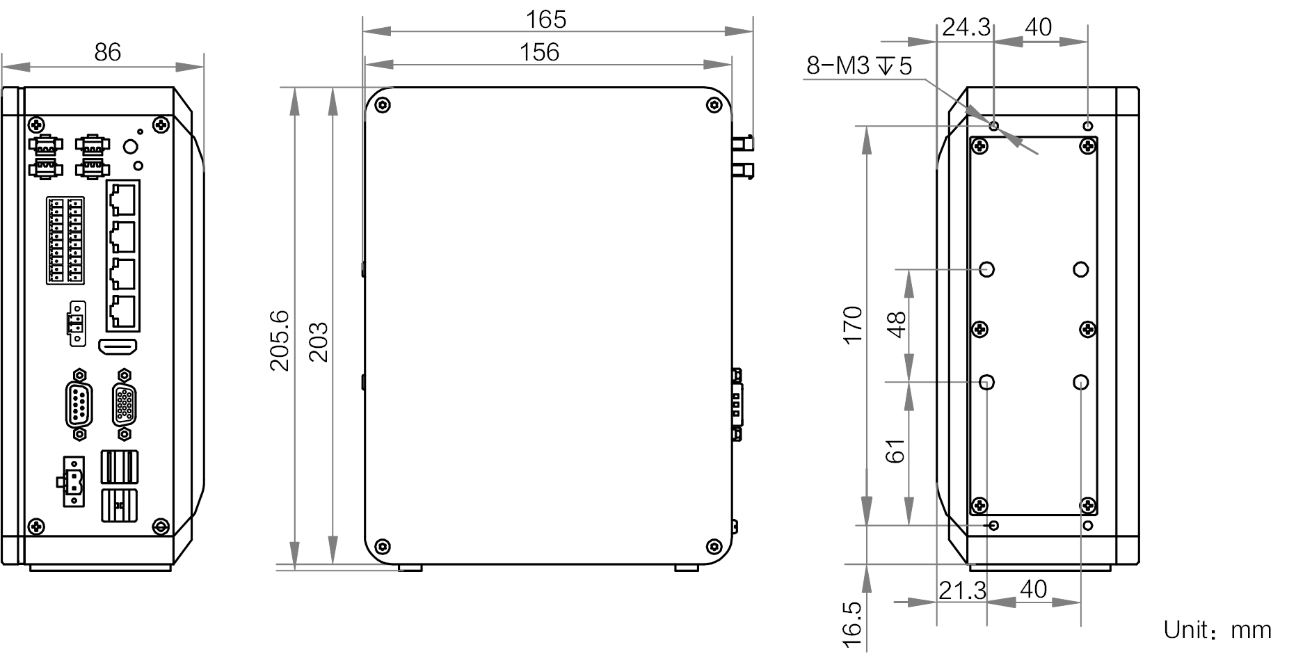 | 结构 | 外形尺寸 | 165 mm × 205.6 mm × 86 mm |