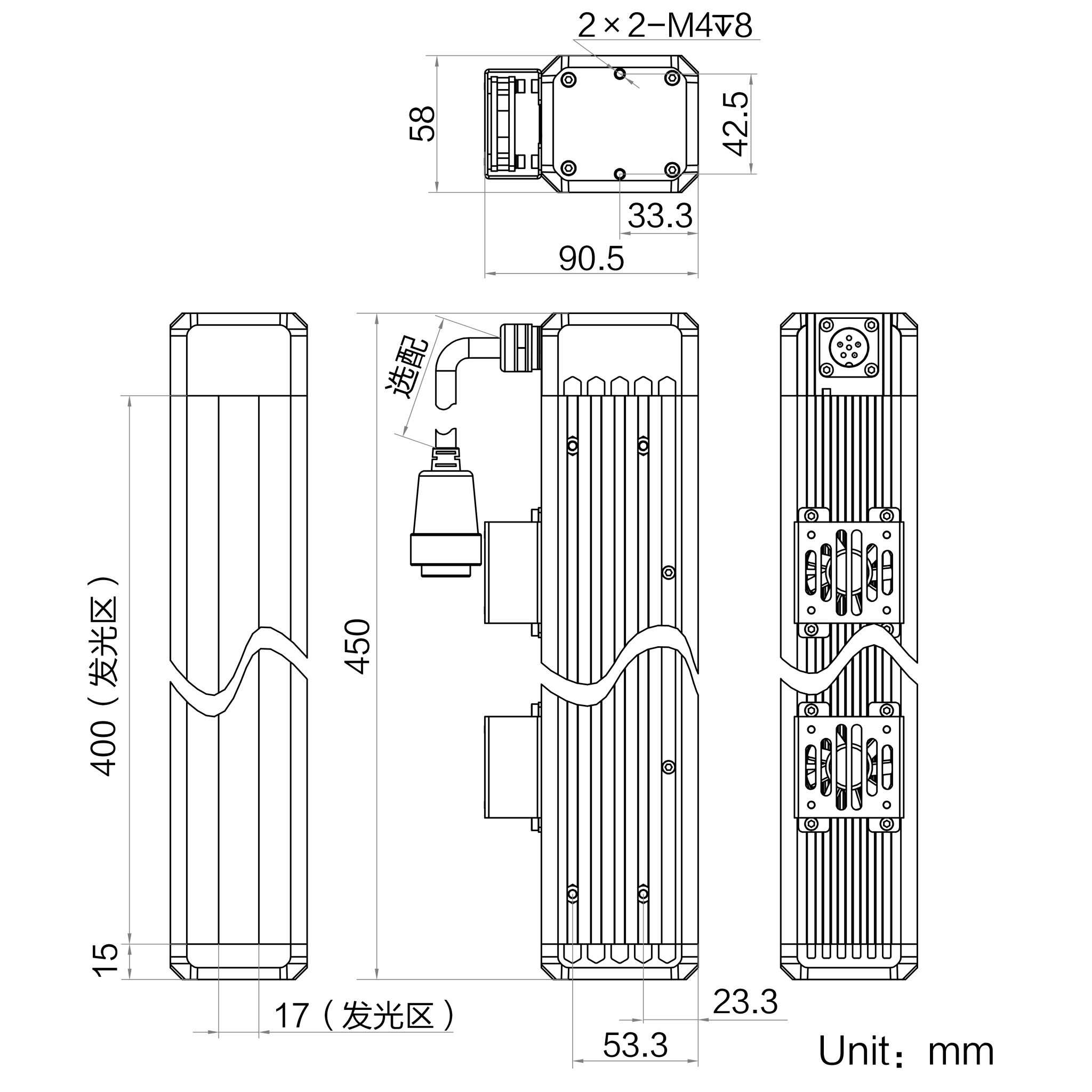 结构 | 外形尺寸 | 450 mm × 58 mm × 90.5 mm |