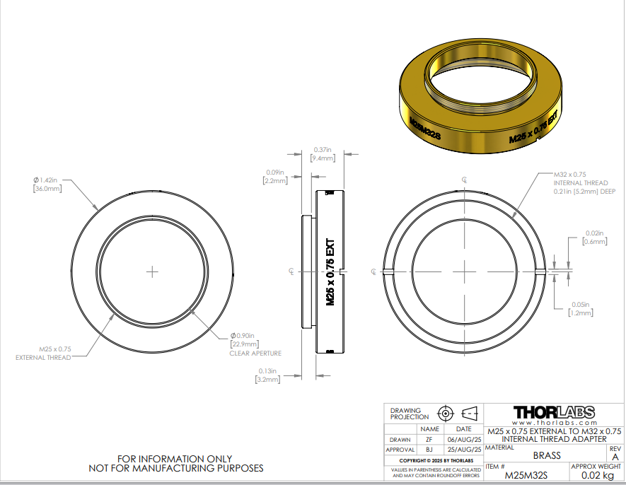 Thorlabs索雷博 M25M32S 显微镜物镜螺纹转接件