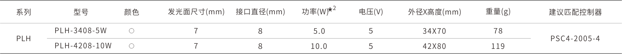*2 实际产品功率与功率表内容相差±10%为正常范围