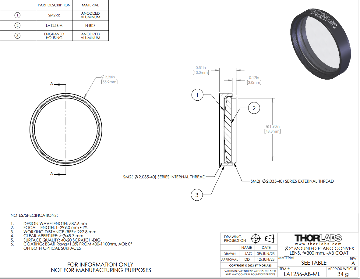 Thorlabs索雷博 LA1256-AB-ML 平凸透镜