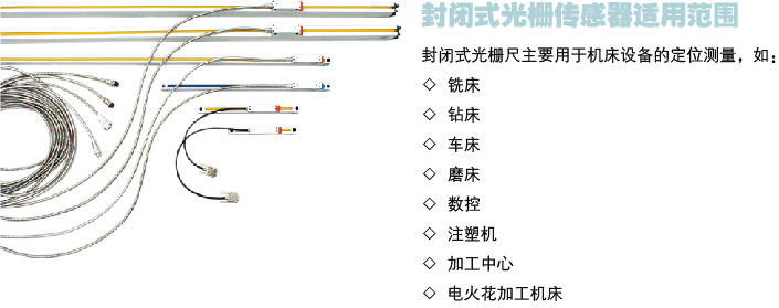 我公司光栅传感器分为敞开式和封闭式两类。其中敞开式为高精度型,主要用于精密仪器的数字化改造,最高分辨率可达20nm,最长可做到50m;封闭式则主要用于普通机床、仪器的数字化改造,输出波形为方波(或正弦波),按外形分类可分为小型尺、标准尺、大型尺三类,其中大型尺(JCXG型)最长可做到3100mm,超长尺可做到3100mm~15000mm。此外可根据用户需求,提供各种安装附件。