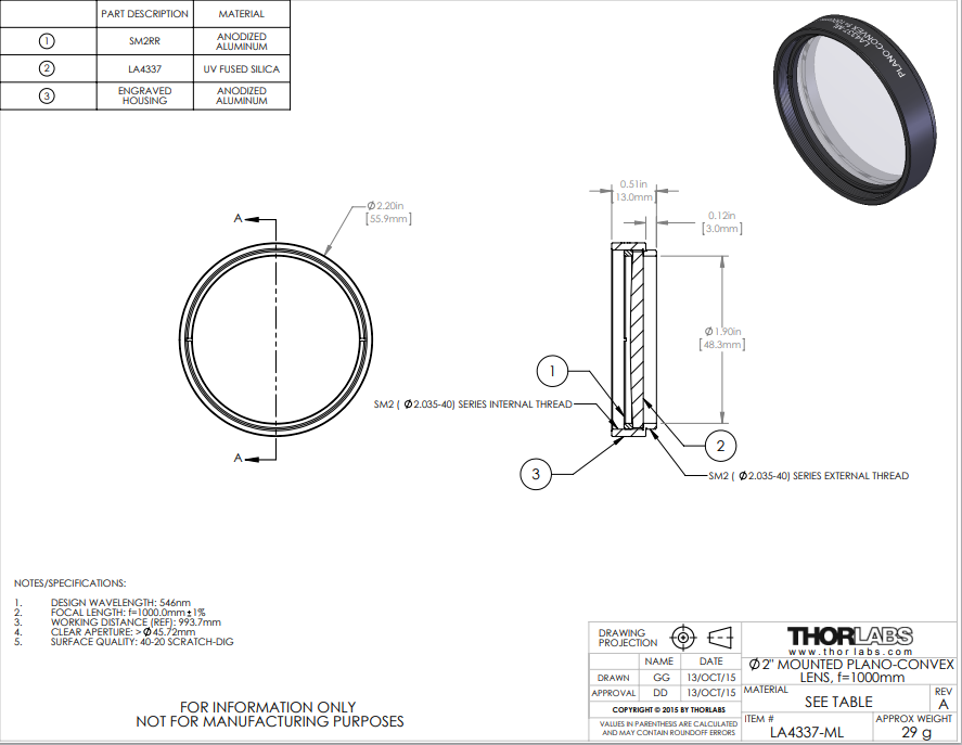 Thorlabs索雷博 LA4337-ML 平凸透镜