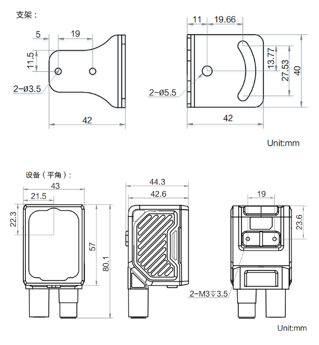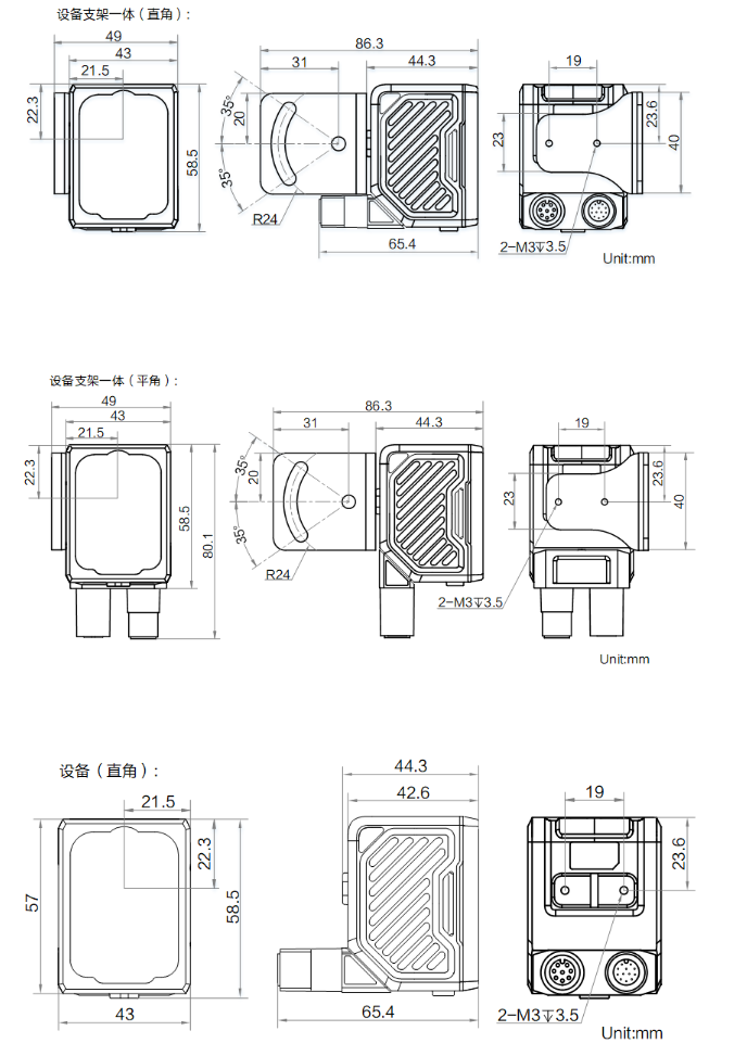 外形尺寸 | 平角:80.1 mm × 43 mm × 44.3 mm 直角:58.5 mm × 43 mm × 65.4 mm |