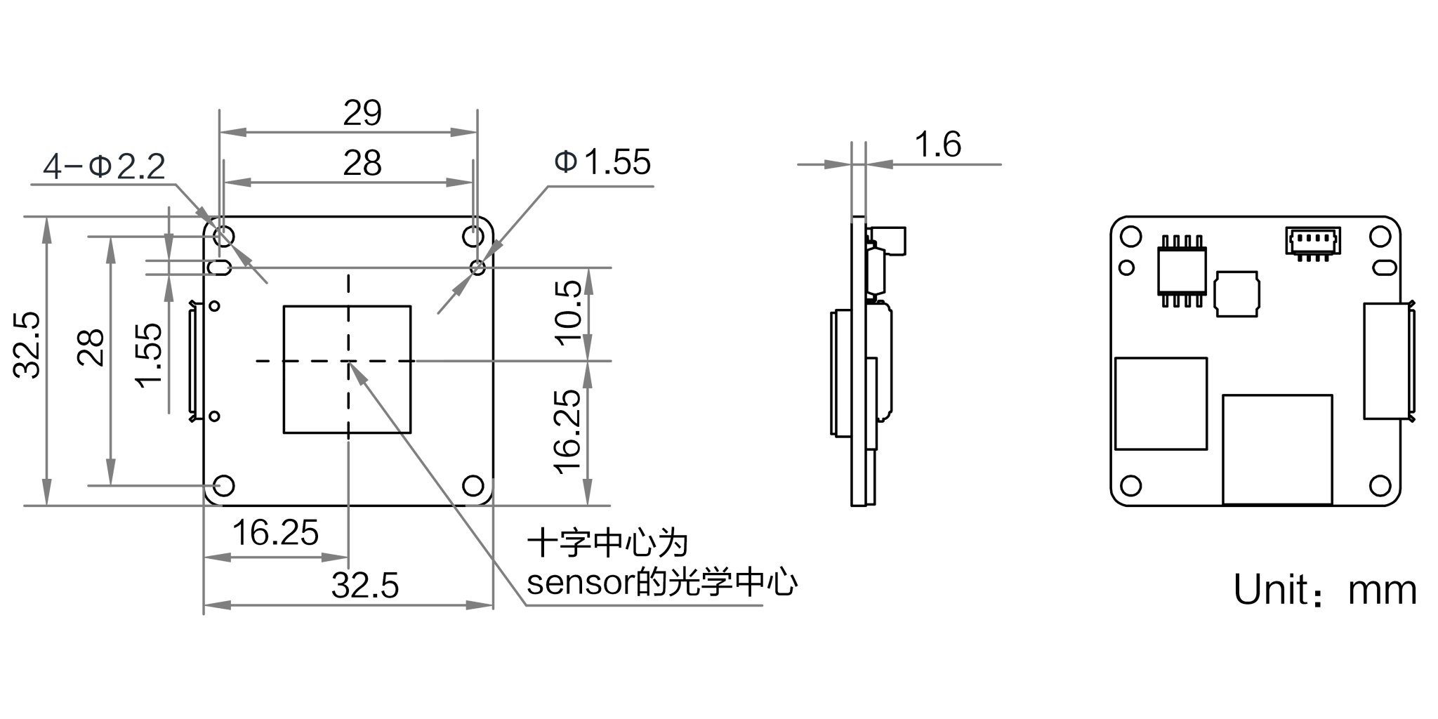 外形尺寸 | 32.5 mm×32.5 mm×1.6 mm |