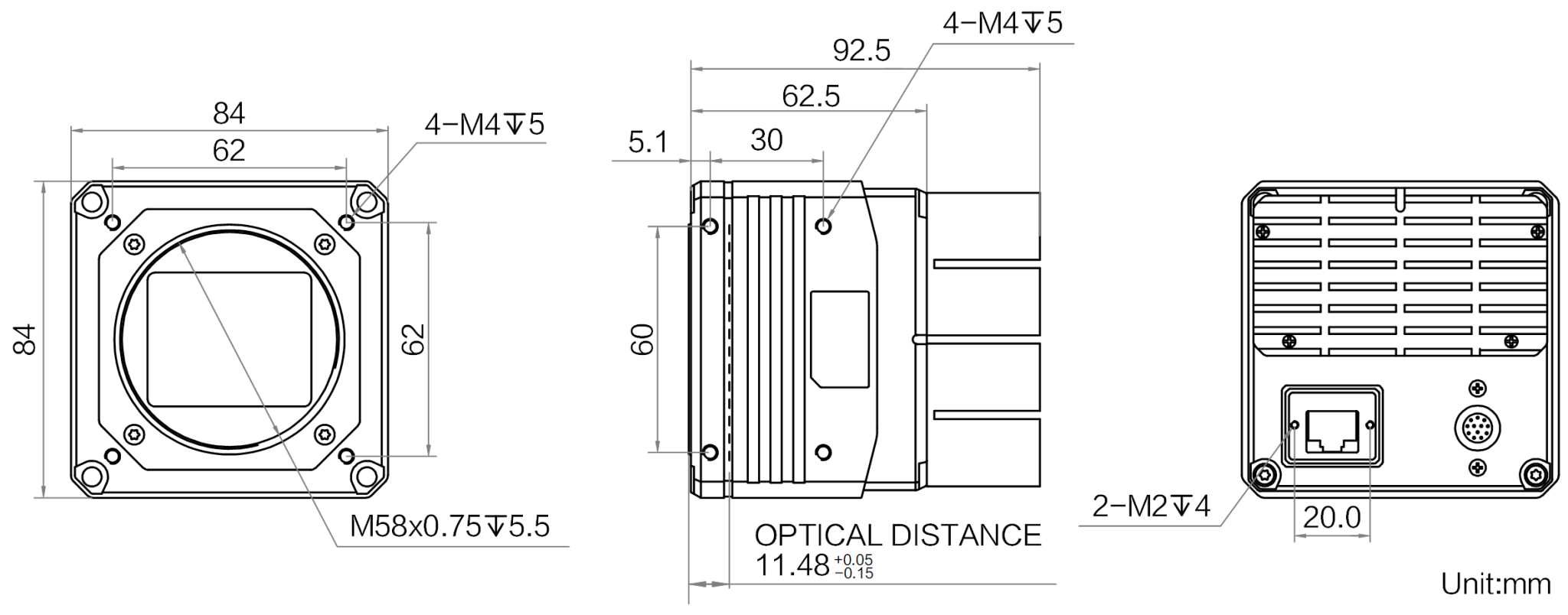 结构 | 镜头接口 | M58*0.75,法兰后焦11.48 mm |