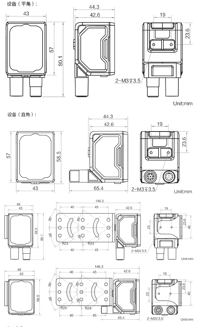 外形尺寸 | 平角:80.1 mm × 43 mm × 44.3 mm 直角:58.5 mm × 43 mm × 65.4 mm |