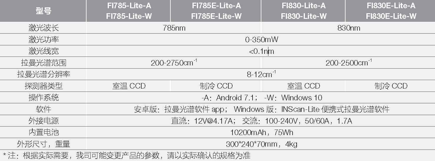 FI- Lite 系列可选785nm 或830nm 激发波长,搭配低杂散光光谱仪,可应用于食品药品安全现场检测、SERS 增强剂和增强拉曼技术研究等应用领域。