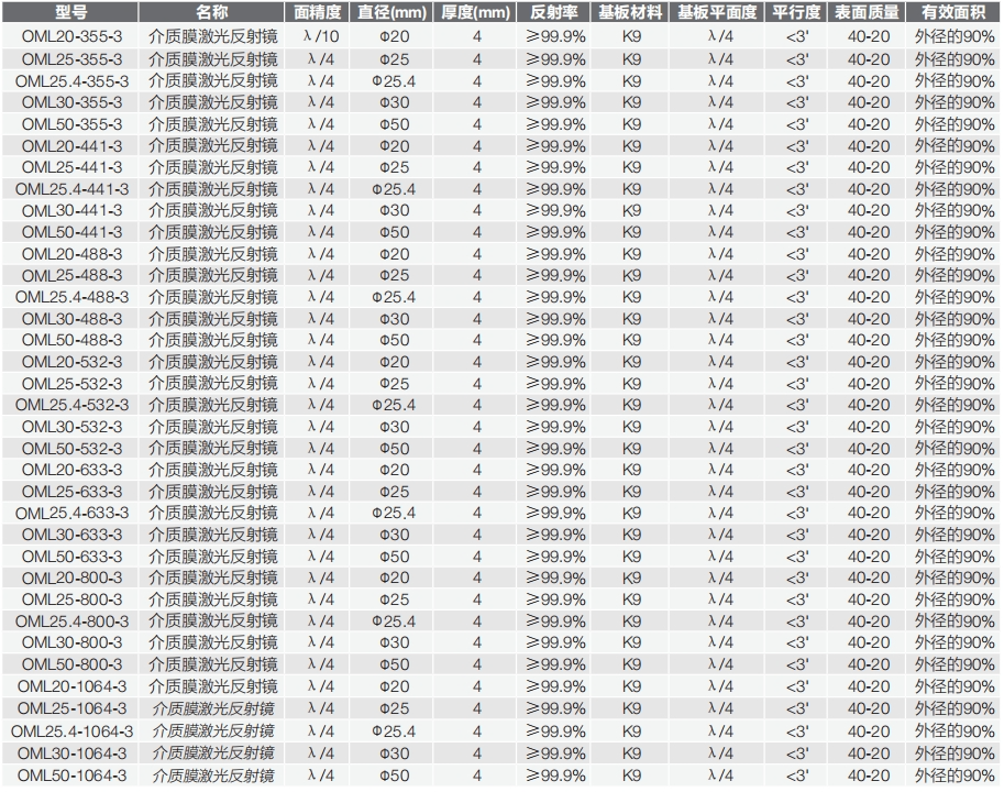 1.OML系列介质膜激光反射镜