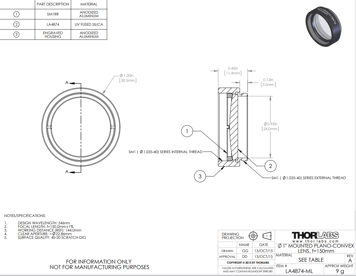 - 提供Ø1/2英寸、Ø1英寸,Ø2英寸和Ø75 mm 透镜,安装在SM螺纹外壳中