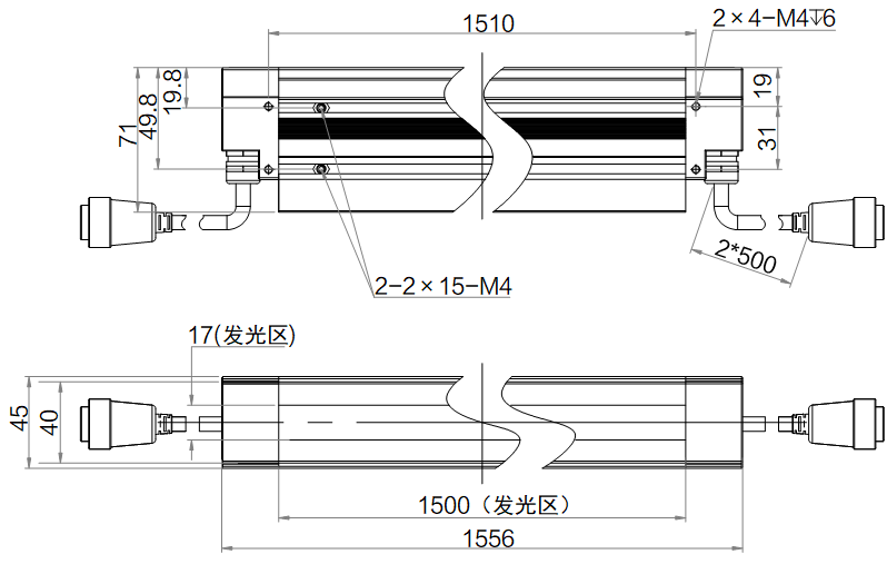外形尺寸 | 1556 mm × 45 mm × 49.8 mm |