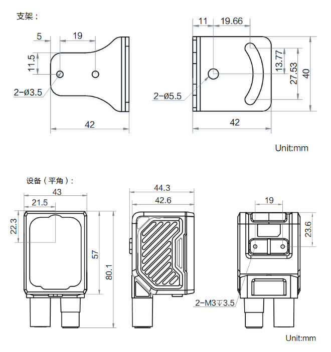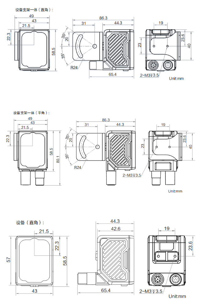 外形尺寸 | 平角:80.1 mm × 43 mm × 44.3 mm 直角:58.5 mm × 43 mm × 65.4 mm |