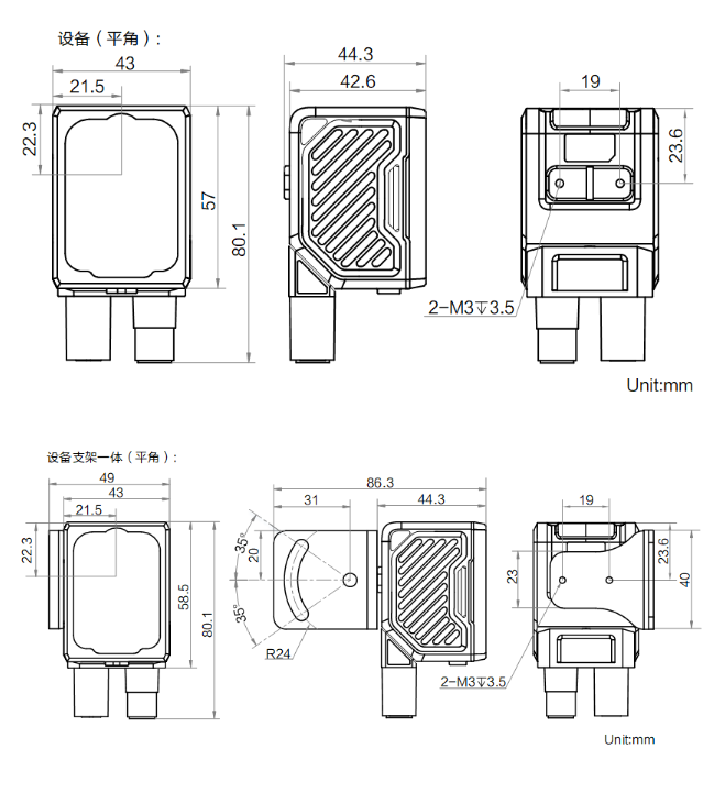外形尺寸 | 平角:80.1 mm × 43 mm × 44.3 mm 直角:58.5 mm × 43 mm × 65.4 mm |