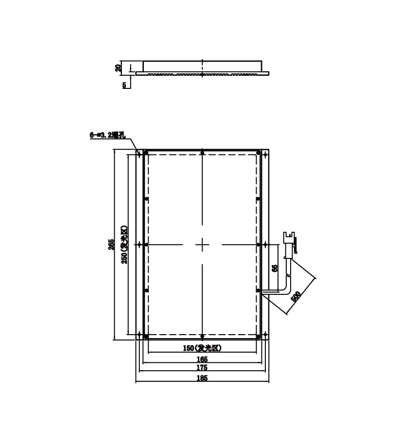 发光区尺寸 | 250 mm × 150 mm |