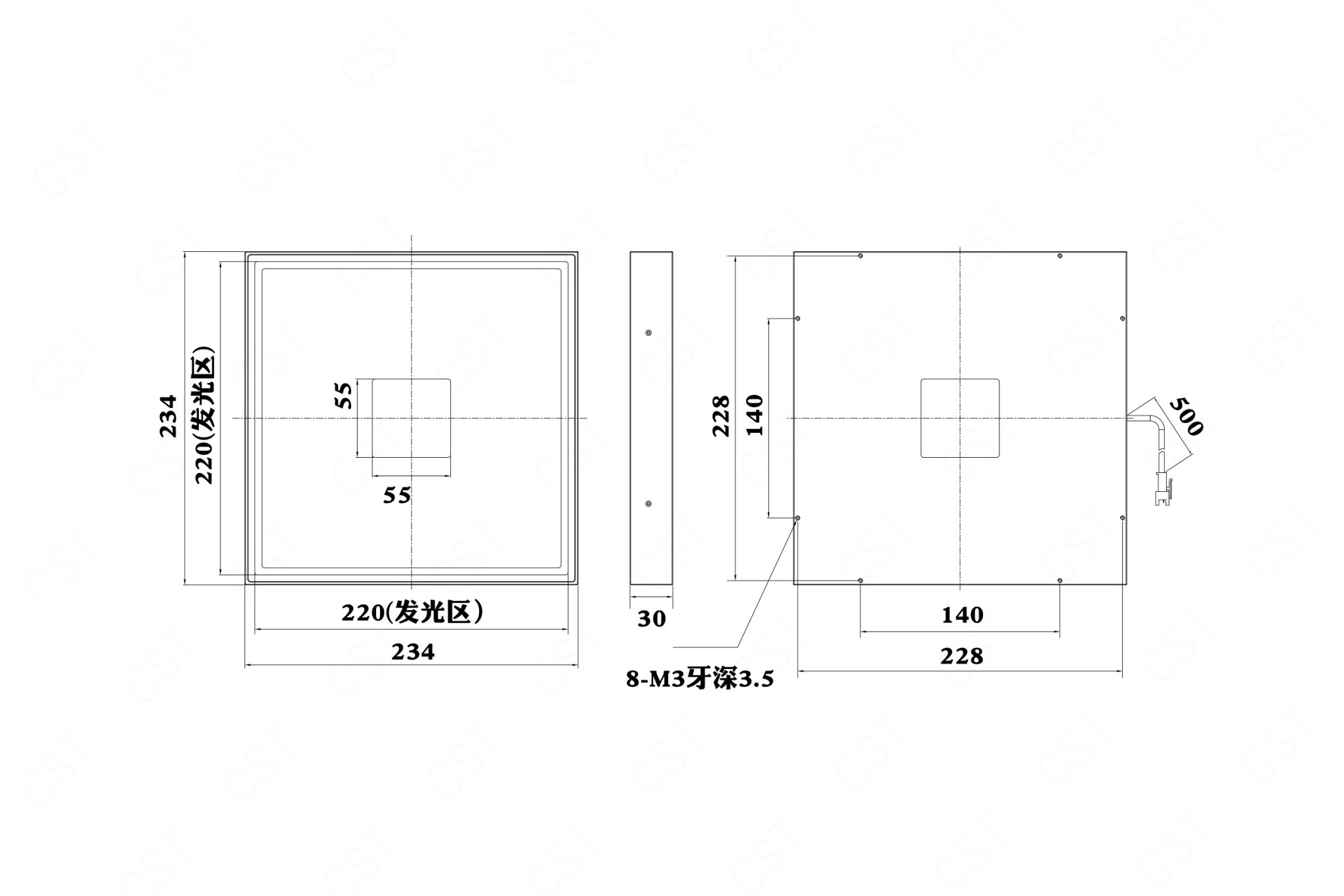 产品特点:适用于方形被测物体,采用特殊漫射材料,无灯珠干扰,特殊的结构设计,边角连接处无暗区,光线柔和,均匀性高。