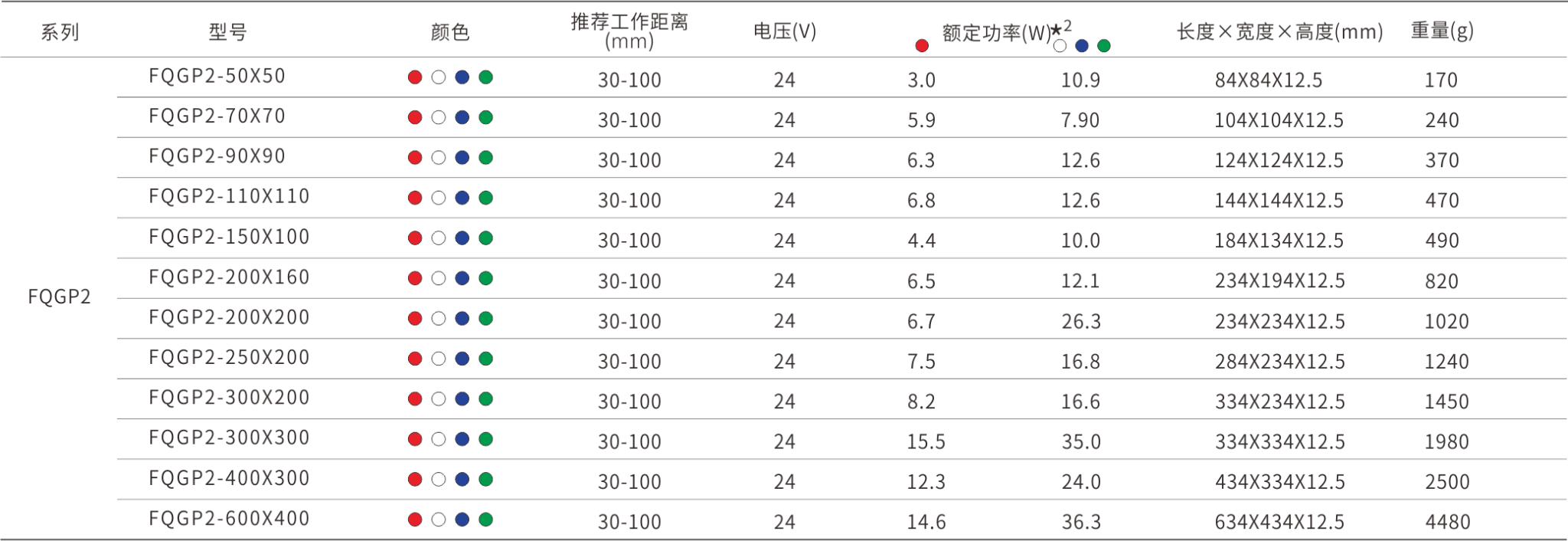 *2 实际产品功率与功率表内容相差±10%为正常范围