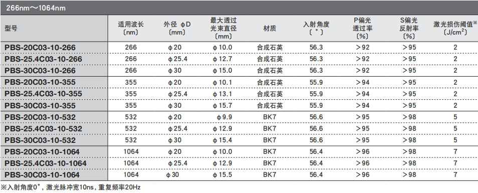 ▶使用前,请务必确认入射激光光束的能量密度要低于激光损伤阈值。