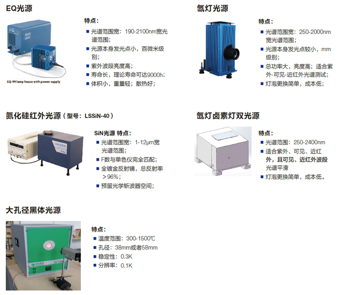 卓立汉光根据样品光谱相应范围选择适合的光源,如EQ 光源,氙灯光源,氙灯溴钨灯符合光源。