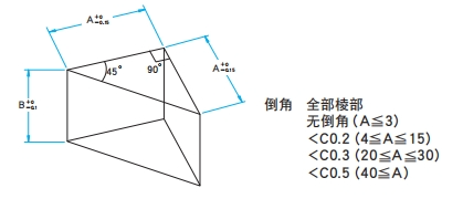 ▶实测的尺寸A包含了倒角部分,所以会比样本值稍小。尺寸公差由斜面和两个底面所成三角形而定。