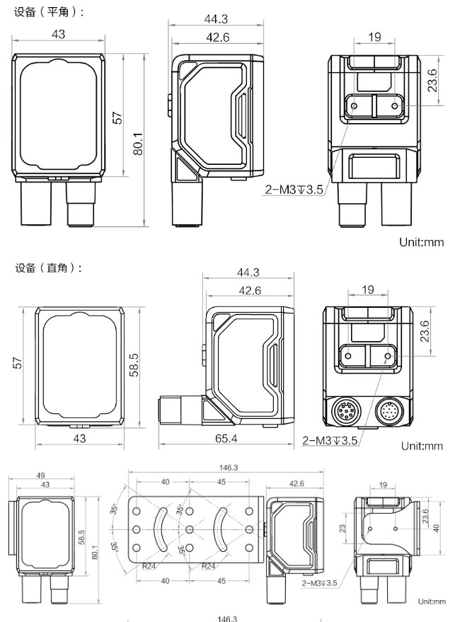 外形尺寸 | 平角:80.1 mm × 43 mm × 44.3 mm 直角:58.5 mm × 43 mm × 65.4 mm |