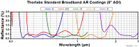 图2.3:Thorlabs标准宽带增透膜(8° AOI)的反射率曲线图。
