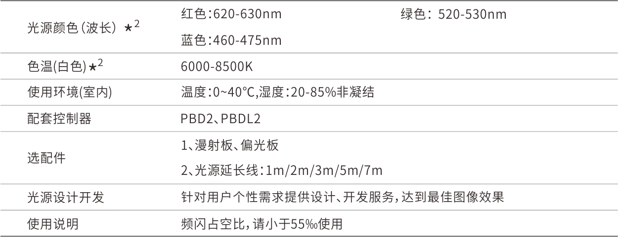 *1 因为频闪光源为高功率光源,所以光源不能常亮,具体占空比要求根据功率大小而定