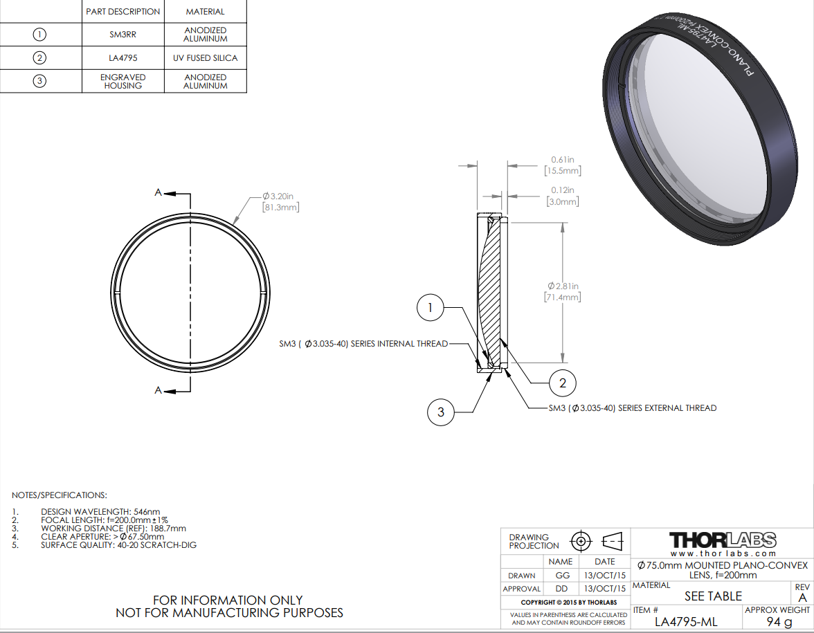 Thorlabs索雷博 LA4795-ML 平凸透镜