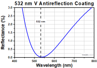- V形增透膜:在532 nm处的反射率小于0.25%