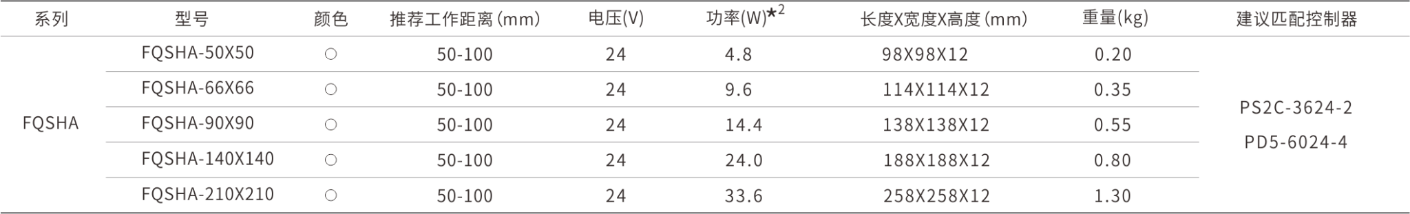 *2 实际产品功率与功率表内容相差±10%为正常范围