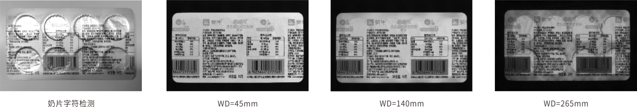 通过改变光源与被测物之间的距离,可以改变成像效果。不规则物体的字符检测推荐工作距离20-80mm