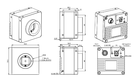 59.5x59.5x39.5mm(不含镜头底座和后壳接口)