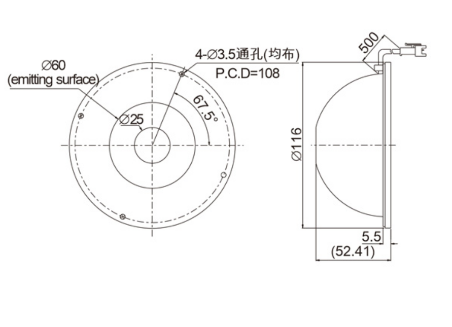 使用寿命 | 在本公司指定使用条件下,红光5万小时,白光3万小时,亮度降低到出厂值的50% |