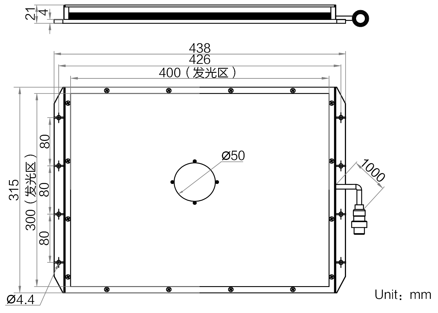 结构 | 外形尺寸 | 438 mm × 315 mm × 21 mm |