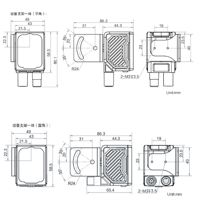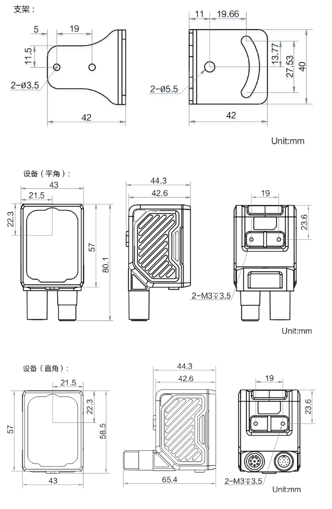 外形尺寸 | 平角:80.1 mm × 43 mm × 44.3 mm 直角:58.5 mm × 43 mm × 65.4 mm |