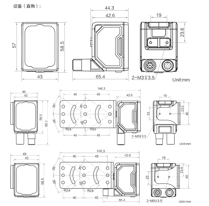 外形尺寸 | 平角:80.1 mm × 43 mm × 44.3 mm 直角:58.5 mm × 43 mm × 65.4 mm |