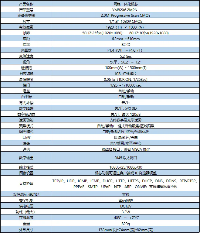 山田YAMAKO YM82x6.2M2N 网络一体化机芯